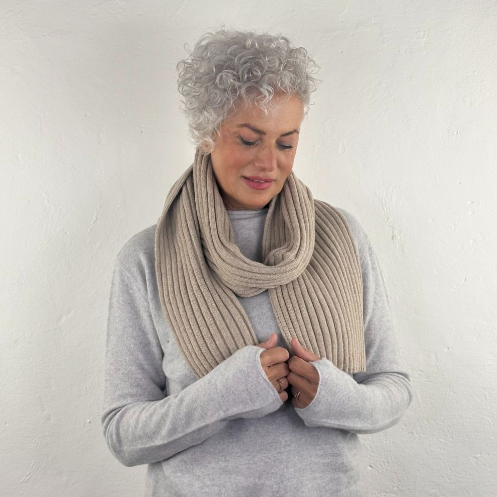 The ribbed knit adds depth and structure, enhancing the natural softness of cashmere.