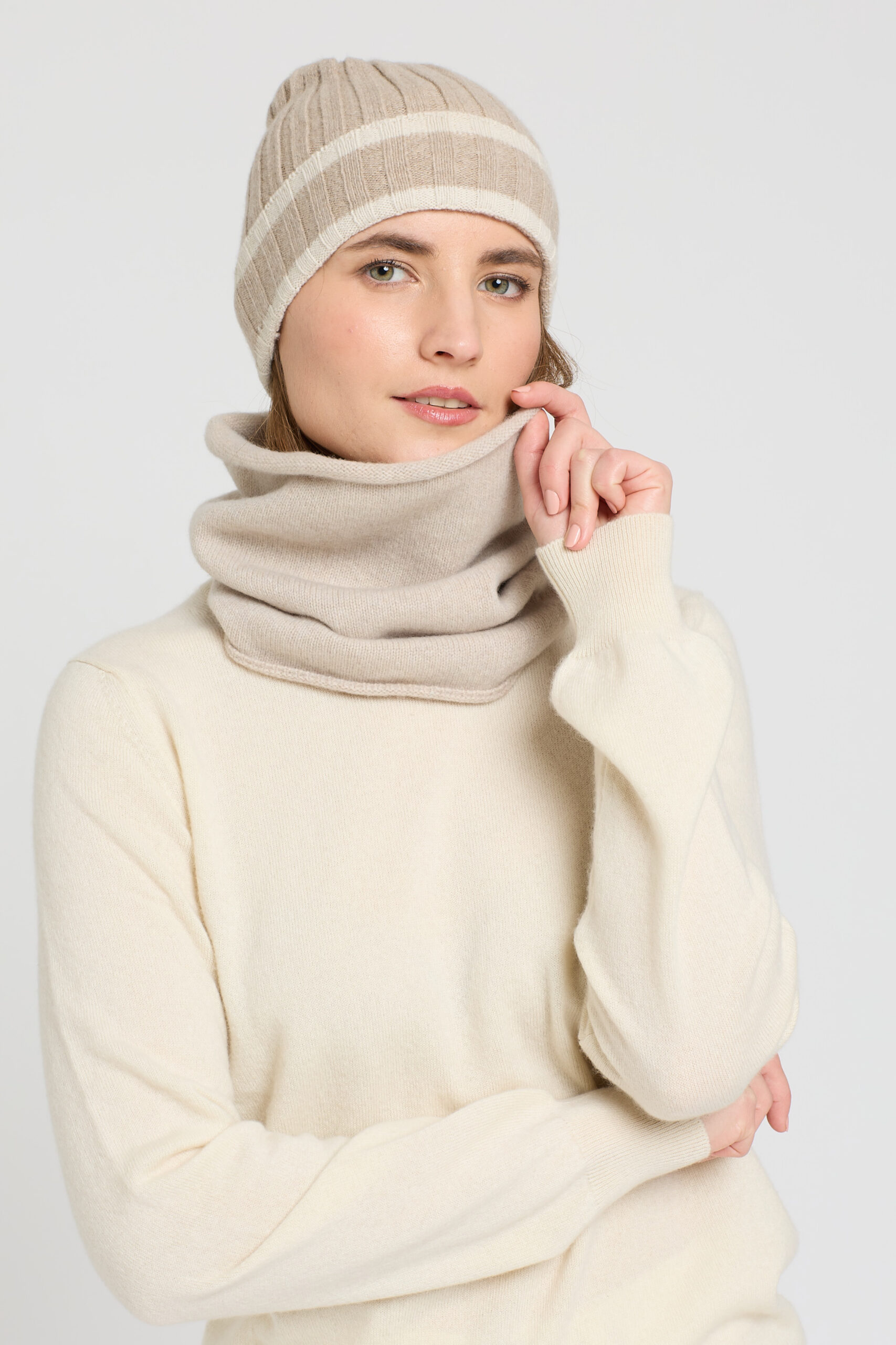 The Due Toscani women’s neck warmer is crafted from 100% pure cashmere and made in Prato, Tuscany – Italy, in the heart of the historic textile district. Designed for warmth without bulk, it measures 25 x 32 cm, offering the perfect balance between comfort, protection, and refined minimalism.