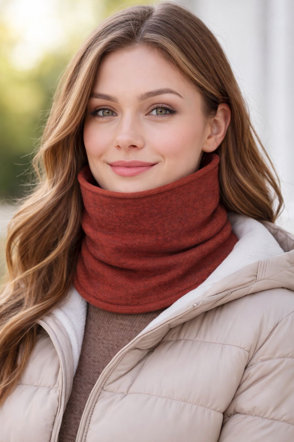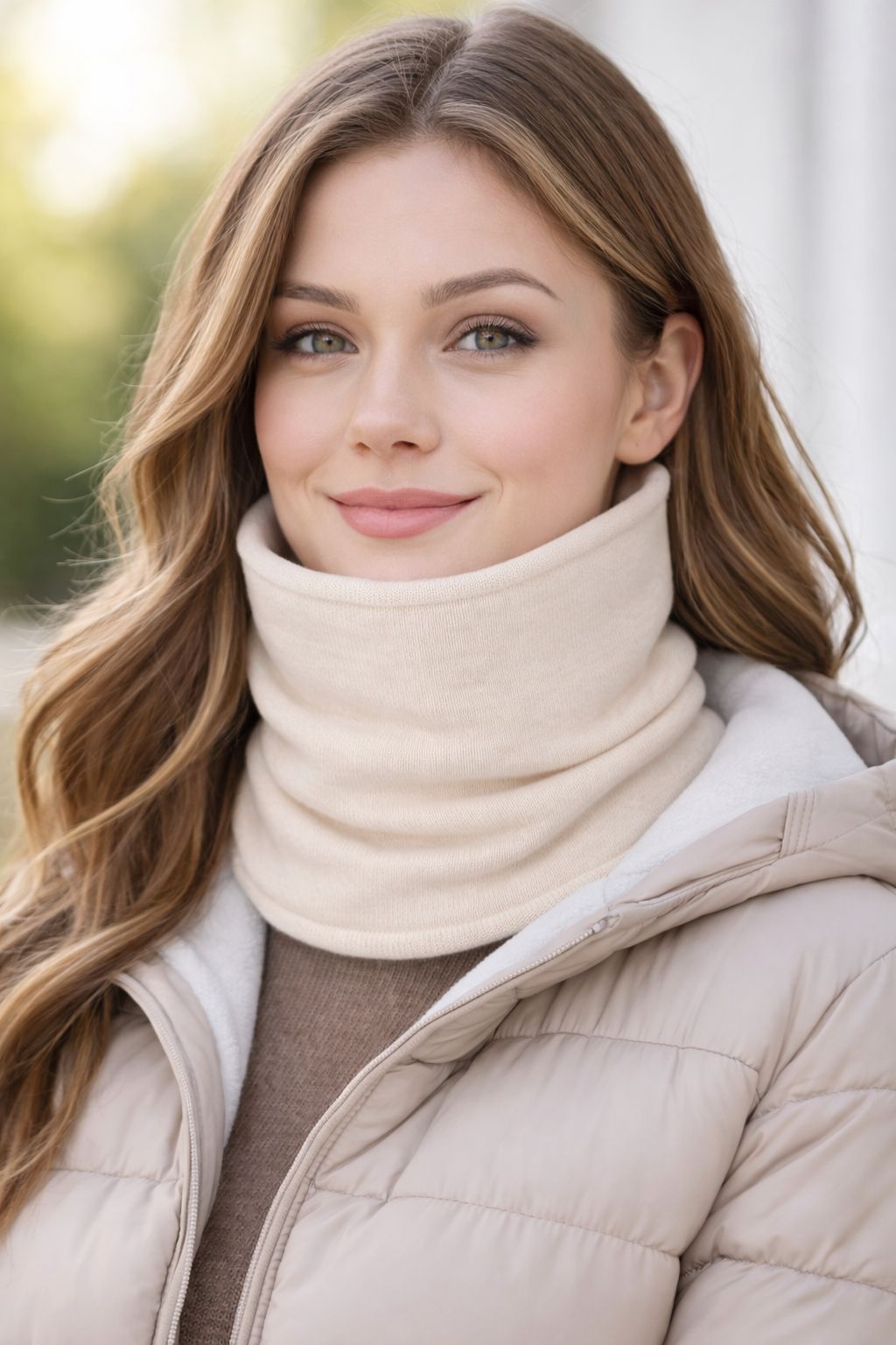The tubular construction ensures a clean silhouette and a comfortable fit around the neck, making it ideal for everyday wear during colder seasons. Lightweight yet incredibly insulating, this neck warmer delivers natural breathability and exceptional softness against the skin — without irritation.